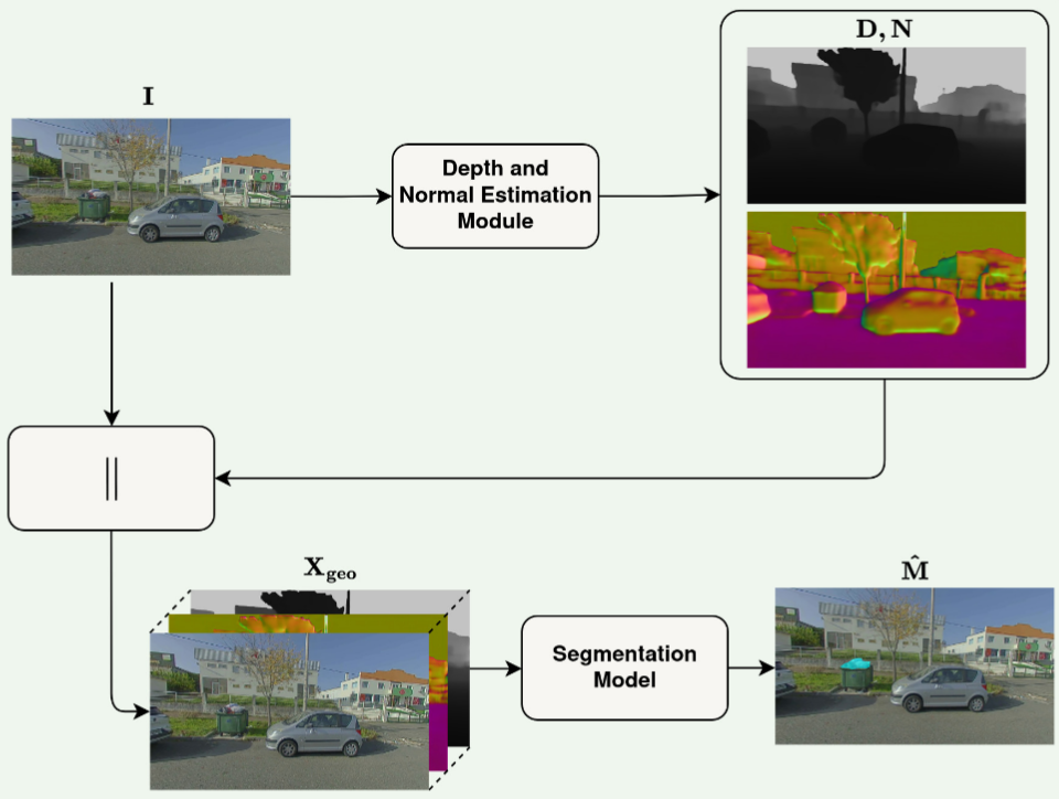 To tackle the challenging task of segmenting amorphous overflowing waste, we propose a model-agnostic strategy that enriches the standard RGB input. We use a zero-shot model to infer depth and surface normal maps, which are then concatenated with the RGB image to form a 7-channel input tensor. This additional geometric information helps models better distinguish foreground waste from cluttered backgrounds.